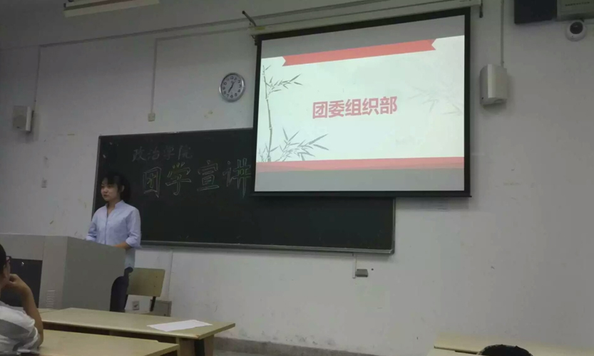 为了更好地促进新生融入大学生活,为政治学院团学各部门招揽新干事,9月20日在3号楼205举行团学宣讲会,学院各部门主要负责人和16级新生参加大会。
