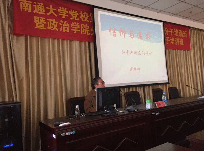 11月4日,南通大学党校第十二期教职工入党积极分子暨政治学院分党校第五期入党积极分子培训班第四讲在十号楼323成功举办。本次党教由蒋辉明老师主讲,政治学院辅导员董红燕老师主持,围绕“信仰与追求——和青年朋友谈心”的主题展开。