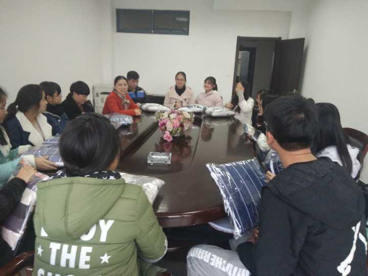 在本次活动中,大家都围坐在会议室里,用最轻松的方式进行交流,以营造温暖愉快的气氛。首先,董老师向大家介绍了一些今年考研需要注意的事项,以及鼓励大家今年在考研这条道路上要坚持下去。接着,董老师为他们在生活与学习上遇到的疑难困惑认真地做了解答并提了意见。最后,董老师和生活部成员一起将抱枕送给了即将参加考研的大四同学们,并为他们送上了真诚的祝福,将温暖传递给了他们。