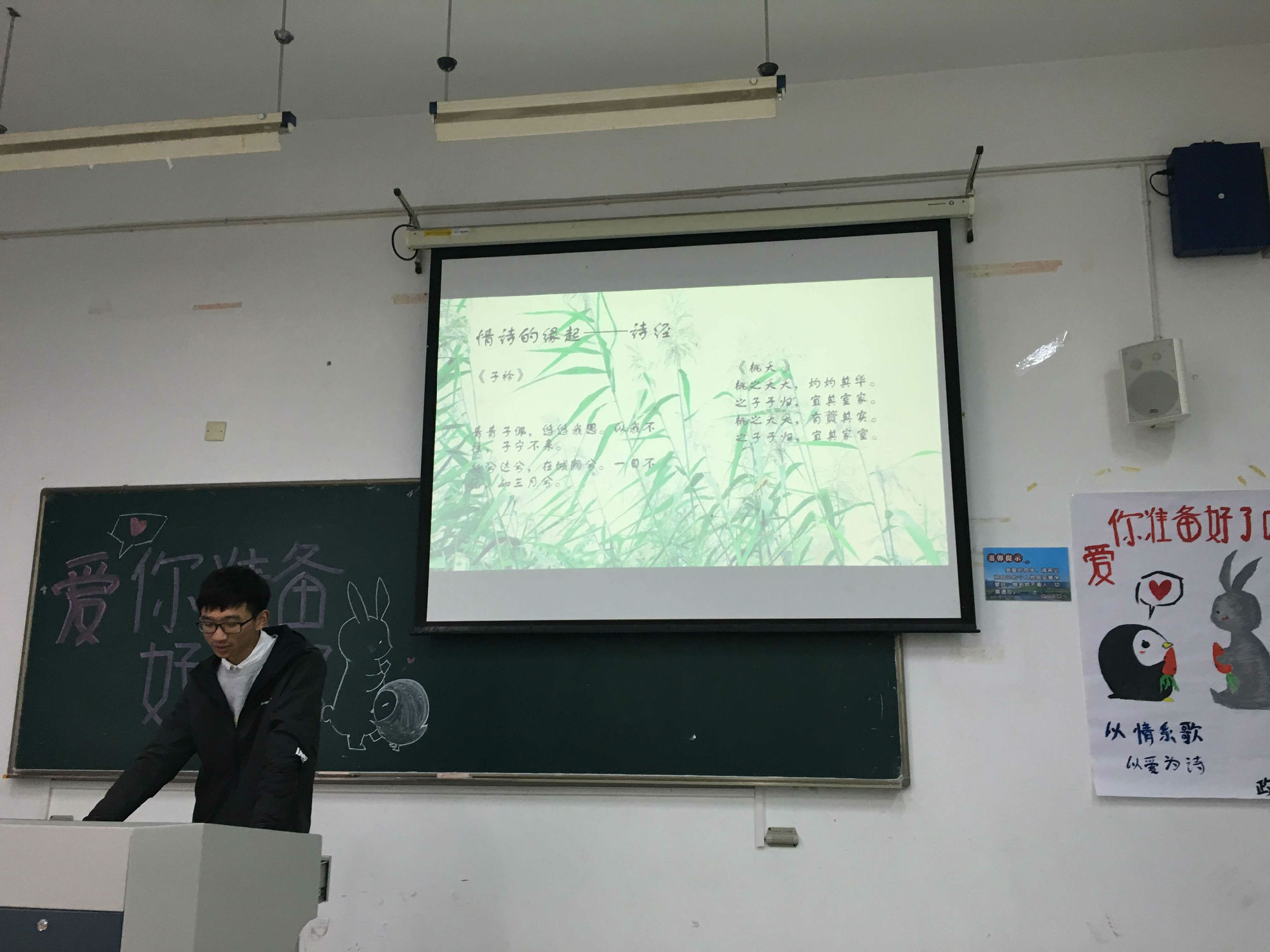 我院心协积极配合校心协领导的指示,于3月20日下午组织大一同学在3号楼112室开展“3·20咱·爱您”特色活动。本次活动以“以情系歌,以爱为诗”为主题,通过同学们组队参与诗歌竞答的形式,让同学们体味古人及今人对爱情的向往和理解从而对“爱”有更深一步的了解。
