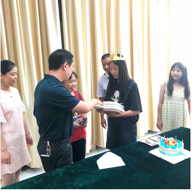 9月8日早上,学院团委学生会成员提前来到10号楼一楼的资料室布置生日现场,随后罗宇英和她的父母、舍友来到现场。此时马克思主义学院副书记沈金峰、辅导员董红燕、班主任冯鹏等老师已早早在活动室等待,他们与罗宇英的父母进行了热烈的交流,对罗宇英同学提出了美好的期望并为其送上蛋糕和礼物,礼物是精心挑选的几本名著和顾玉平院长亲笔写的生日祝福,这是学院师生们的一片心意,展现出我院对学生的深切关怀与殷切期望。