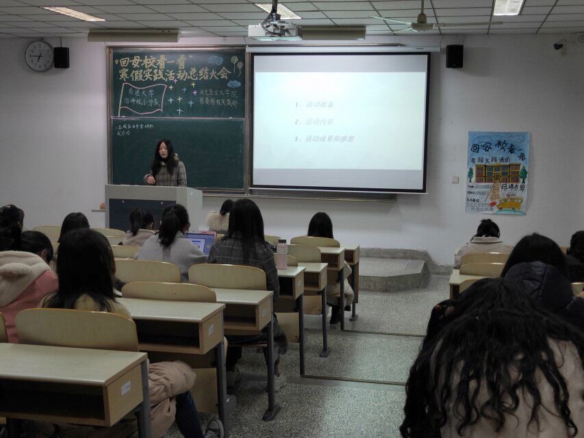 3月7日晚,马克思主义学院团委科技实践部于8号楼307教室成功举办“回母校看一看”寒假实践活动总结大会,马克思主义学院全体大一同学参加活动,科技实践部马婧茹和石佳负责本次活动的主持。
