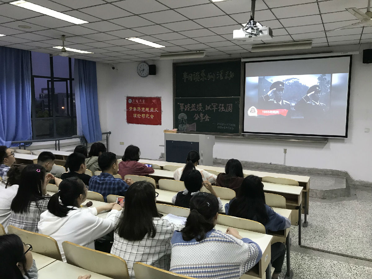 4月24日晚,青年马克思主义理论研究会和马克思主义学院宣传部于8号楼307教室成功举办“筚路蓝缕,以军强国”感受会活动,活动由李沁原担任主持人。
