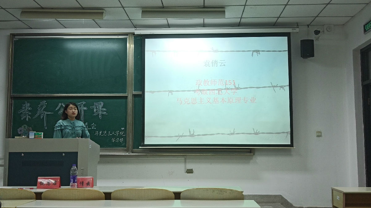 5月22日晚,马克思主义学院学习部于7号楼205教室成功举办了素养公开课之考研经验交流会活动。本次活动邀请政教师范151班的饶慧君和袁倩文两位同学担任主讲人,大一大二全体同学参加本次活动。