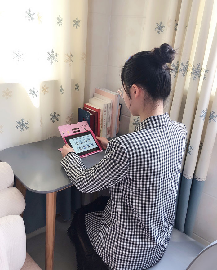 (图为南通大学马克思主义学院研二学生任胜男在家收看国家安全教育课)