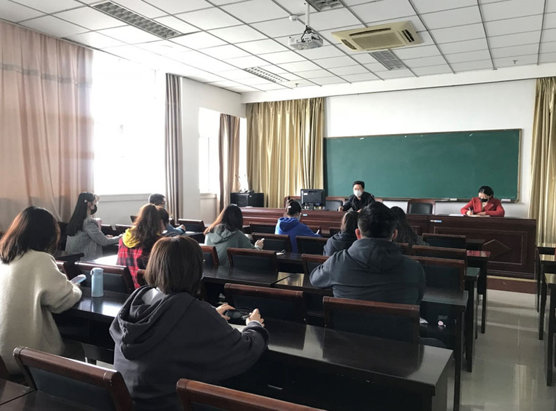 副院长副书记沈金峰强调要认识到疫情的严峻态势,他对学生疫情防控工作提出几点要求。首先要养成良好的生活习惯,不串门不聚集,在公众场合做好防护;其次要做好卫生工作,既要保持个人卫生,也要做好宿舍卫生工作;然后强调出现身体不适须立即上报;最后要求严格执行校园封闭管理,非必须情况不得出校门。辅导员董红燕强调要建立好学院三级防控体系,以便及时把握全院学生动态;要求细化工作任务,严格执行规定,将工作责任到人。