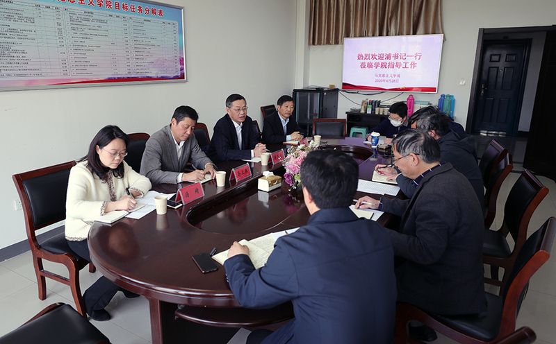 4月28日下午,校党委书记浦玉忠到马克思主义学院调研2020年目标管理任务落实情况并指导工作。