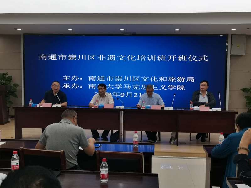 9月21日,由崇川区文化和旅游局主办,我院承办的南通市崇川区非遗文化培训班在市北文体中心开班。开班仪式由崇川区文化和旅游局副局长杜晓春主持,中国工艺美术协会副会长马达、崇川区文化和旅游局局长马卫和马克思主义学院院长王明华出席开班仪式。来自崇川区文化和旅游局、区各街道办事处、文化站、市北文体中心、非物质文化遗产代表性传承人等共56人参加培训。