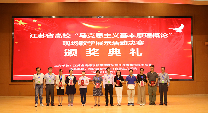 9月26日—9月27日,由江苏省高校思想政治理论课教学指导委员会主办、淮阴师范学院马克思主义学院承办的江苏省高校“马克思主义基本原理概论”现场教学展示活动在淮阴师范学院举行,来自南京大学、东南大学、河海大学、苏州大学、南京师范大学等高校在内的25位教师参加了本次决赛,这25名教师在全省47所高校、71位老师参加初赛基础上产生的选手。决赛现场采取随机抽题的形式,要求选手具有扎实的功底和敏锐的应变能力。经过激烈角逐,我校马克思主义学院蒋彧老师荣获一等奖,她在十分钟内讲解了“马克思主义与当代价值”,思路清晰,激情饱满,理论与实际融会贯通,充分展示了我校马克思主义学院思想政治理论课青年教师的精神面貌、教学水平和综合素质。