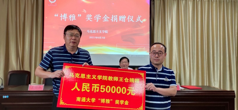 马克思主义学院教师王仓向学院捐赠5万元,并设立“博雅奖学金”。