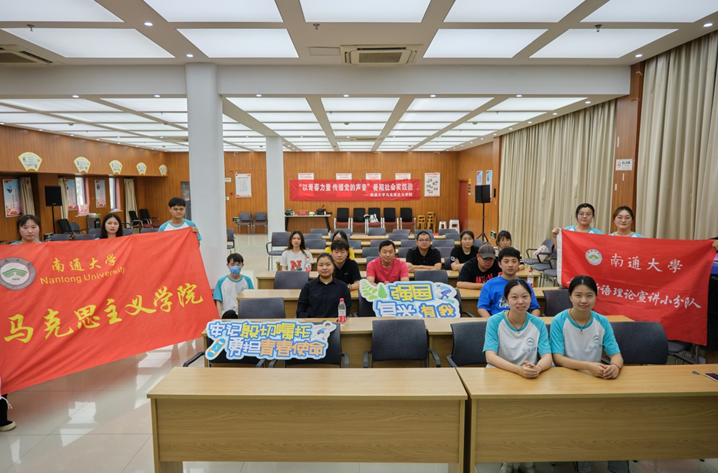 7月2日,南通大学马克思主义学院“青年新语理论宣讲小分队”社会实践团队联合崇川经济开发区世伦桥、盘香沟、青龙桥、海洪4个社区的党委、团委、关工委、新时代文明实践站开展理论宣讲活动。