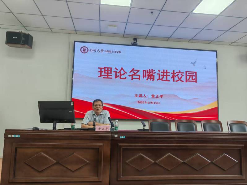 2025年10月15日,马克思主义学院举办“理论名嘴进校园”活动,邀请全国理论宣讲先进个人黄正平,为全院教职工作辅导报告。