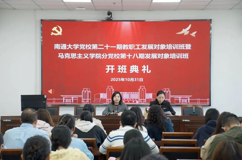 10月31日下午,南通大学党校第二十一期教职工发展对象培训班暨马克思主义学院分党校第十八期发展对象培训班开班典礼举行。马克思主义学院党委书记张杨乐作动员讲话,校党委组织部副部长、党校副校长陈超出席开班式并作开班第一讲,马院党委副书记、副院长董红燕主持会议。