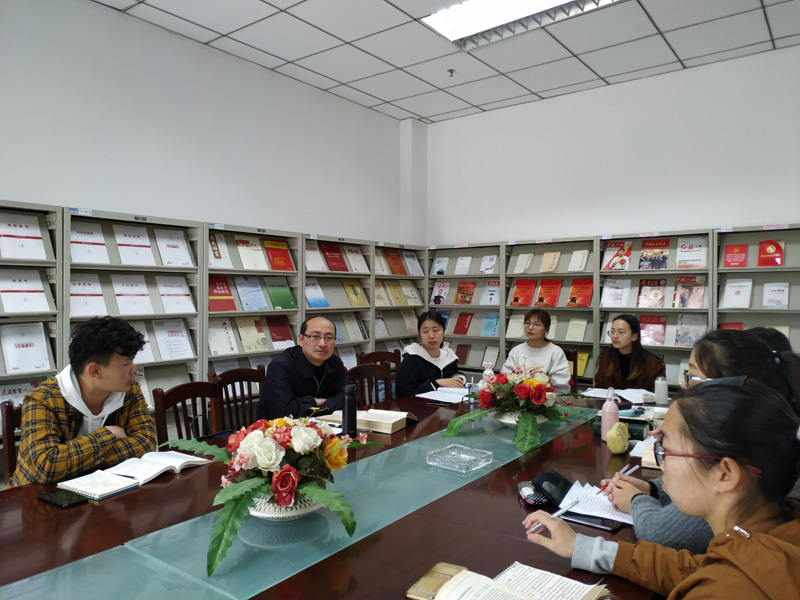 近日,马克思主义学院资料室举行以“纪念‘五四’运动100周年”为主题的“马列著作”读书会。吴日明老师和来自学院的部分本科生、研究生参加了此次学习交流活动。这次大家学习的经典著作是列宁的《青年团的任务》和毛泽东的《五四运动》、《青年运动的方向》。在学习过程中,每位同学围绕著作的写作背景、主要内容,结合习近平总书记关于青年工作的重要论述交流了自己的心得体会。吴日明老师对同学们的发言进行点评并提问,师生交流互动不断,气氛十分热烈。通过学习,同学们对“五四”运动的时代背景、历史意义和青年的责任担当有了更加深刻的认识,进一步增强了自身的责任感和使命感。 读书会是马克思主义学院本科生导师制的有效实现形式之一。2012年5月,为了进一步加强学风建设,全面提升本科生的专业素质,充分发挥学院师资队伍强、师生比例高的优势,马克思主义学院决定在全院范围推行本科生导师制,要求每位教师承担3-5名学生的培养指导任务。吴日明老师积极探索本科生导师制的实现形式,在2012年9月创办“马列著作”读书会。读书会每月举行一期,每期都有一个明确主题。指导老师围绕主题精选3-6篇马克思主义经典著作,要求学生从“写作背景、主要内容、精彩片段、个人心得”四个方面撰写读书笔记并作交流发言。7年以来,读书会围绕“马克思恩格斯与东方国家”、“近代中国国情与中国革命”、“马克思主义认识论”、“毛泽东文化建设思想”、“《矛盾论》《实践论》与党的十九大精神”、“纪念马克思诞辰200周年”等主题共举办40多期,学习了《共产党宣言》、《反杜林论》、《路易·波拿巴的雾月十八日》、《不列颠在印度统治的未来结果》、《中国革命和欧洲革命》、《唯物主义和经验批判主义》、《党的组织和党的出版物》、《中国社会各阶级分析》、《湖南农民运动考察报告》、《矛盾论》、《实践论》、《在延安文艺座谈会上的讲话》等上百篇著作,先后有300多人次参加读书讨论。通过系列读书活动,同学们的理论素养和思想认识水平有了大幅度提高,不少读书会成员成为学院、学校各类社团的骨干力量,在大学生创新创业训练计划项目申请和考研中取得了优异成绩。今后,“马列著作”读书会作为学院专业人才培育的一项品牌活动将不断地传承和发展。(董红燕 顾晓庆)